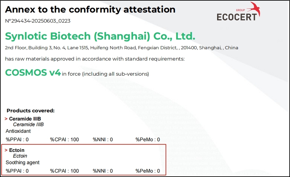 हाल ही में, शंघाई युनलुओ द्वारा निर्मित यिकेडुओयिन ने फ्रांस में ECOCERT द्वारा प्रदान किया गया EU COSMOS प्राकृतिक प्रमाणन प्राप्त किया है।