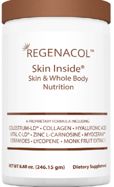 रेगेनाकोल ओरल ब्यूटी सप्लीमेंट में बोवाइन कोलोस्ट्रम, विटामिन सी, बोवाइन कोलेजन पेप्टाइड्स और लाइकोपीन शामिल हैं। लाइकोपीन प्रोकोलेजन (कोलेजन का अग्रदूत) के स्तर को बढ़ा सकता है, जो त्वचा की उम्र बढ़ने को कम करने और त्वचा को पराबैंगनी किरणों से होने वाले नुकसान से बचाने में मदद करता है।